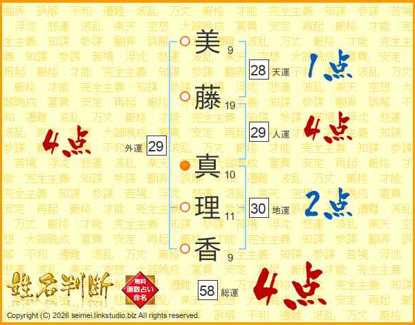 美藤真理香さんの総運は58画の4点!