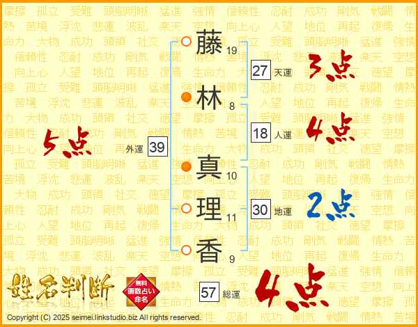藤林真理香さんの総運は57画の4点!