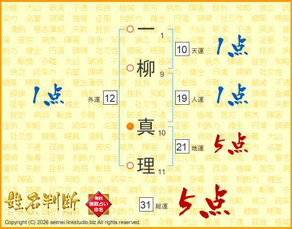 一柳真理さんの総運は31画の5点!
