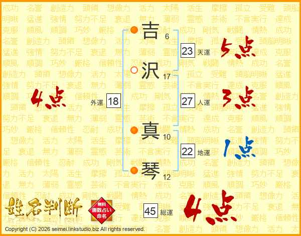 吉沢真琴さんの総運は45画の4点!