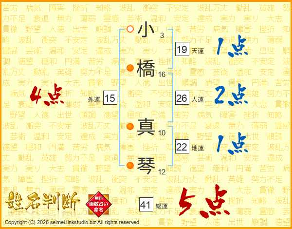小橋真琴さんの総運は41画の5点!