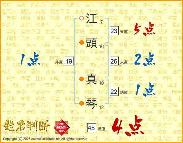 江(7画)頭(16画) 真(10画)琴(12画)