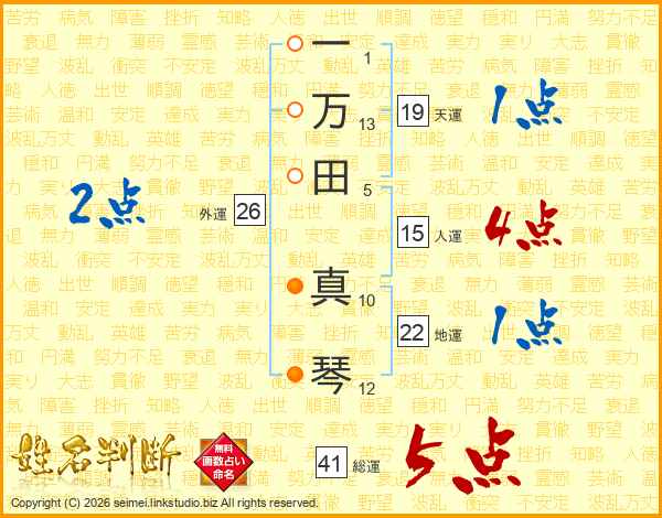 一万田真琴さんの総運は41画の5点!