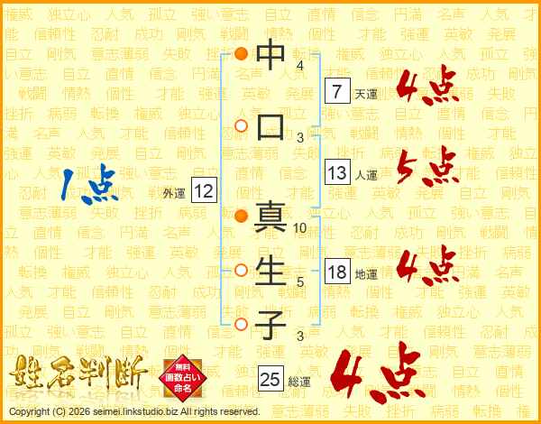 中口真生子さんの天運は7画の4点!