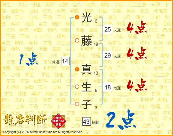 光(6画)藤(19画) 真(10画)生(5画)子(3画)