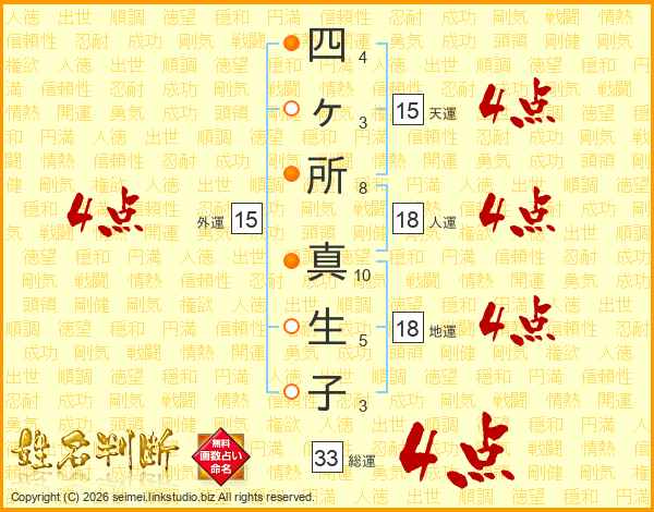 四ヶ所真生子さんの総運は33画の4点!
