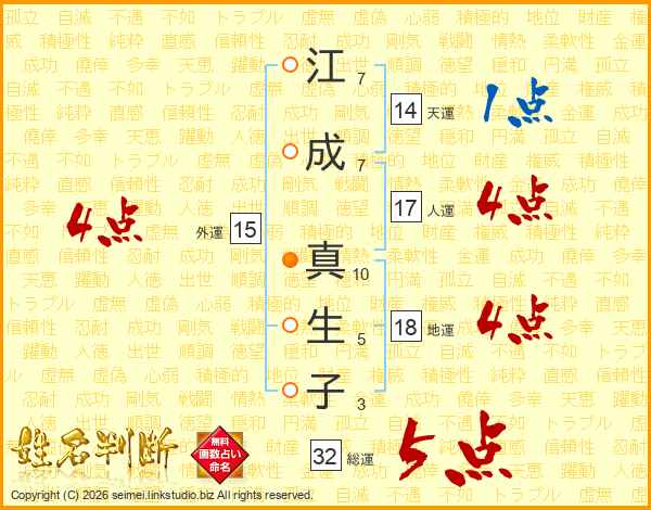 江成真生子さんの総運は32画の5点!