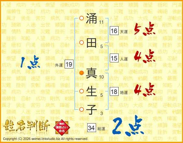 涌田真生子さんの天運は16画の5点!