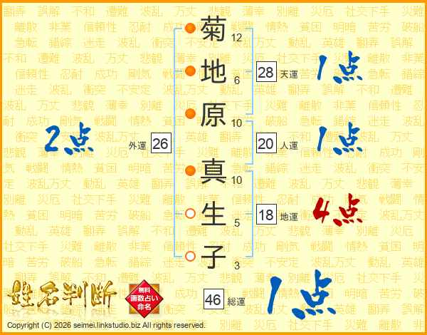 菊地原真生子さんの総運は46画の1点!