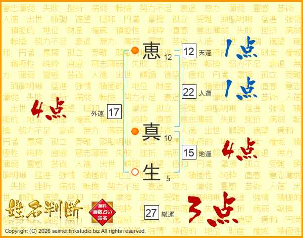恵(12画) 真(10画)生(5画)