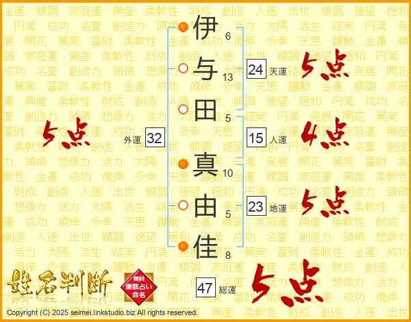 伊与田真由佳さんの総運は47画の5点!