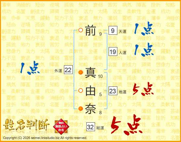 前真由奈さんの総運は32画の5点!