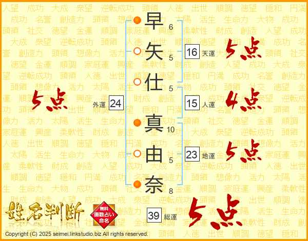早矢仕真由奈さんの総運は39画の5点!