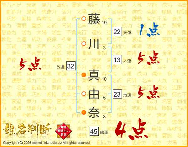藤川真由奈さんの総運は45画の4点!