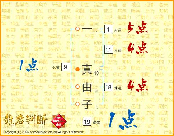 一真由子さんの総運は19画の1点!