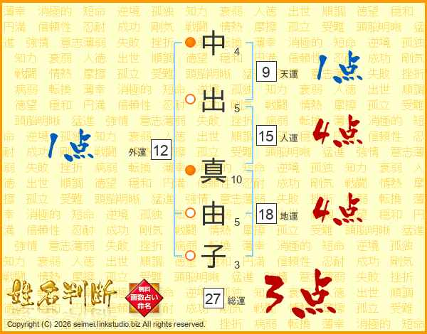 中出真由子さんの総運は27画の3点!