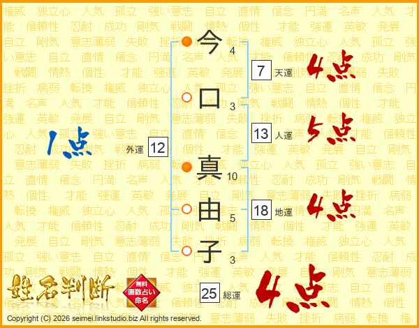 今口真由子さんの総運は25画の4点!