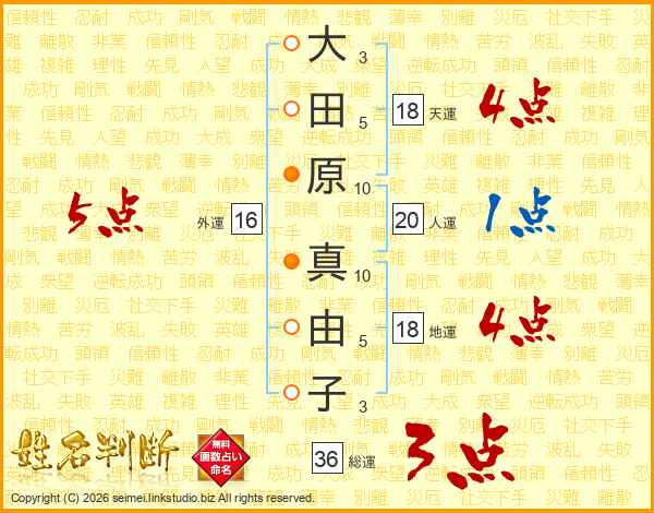 大田原真由子さんの天運は18画の4点!