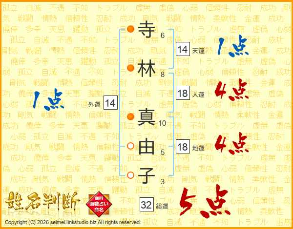 寺林真由子さんの総運は32画の5点!