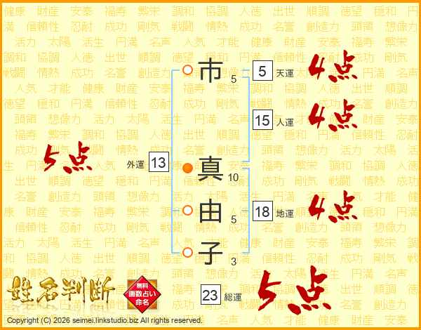 市真由子さんの総運は23画の5点!