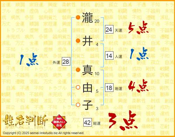 瀧井真由子さんの総運は42画の3点!