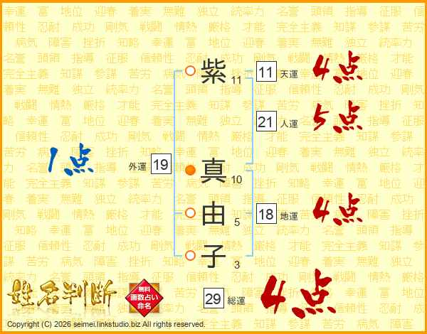 紫真由子さんの総運は29画の4点!