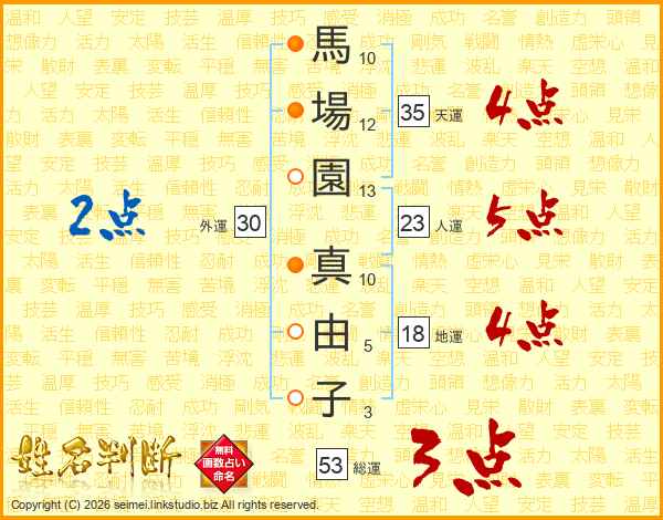 馬場園真由子さんの総運は53画の3点!