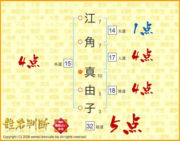 江角真由子さんの総運は32画の5点!