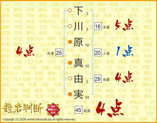 下川原真由実さんの総運は45画の4点!