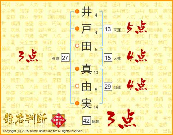 井戸田真由実さんの総運は42画の3点!