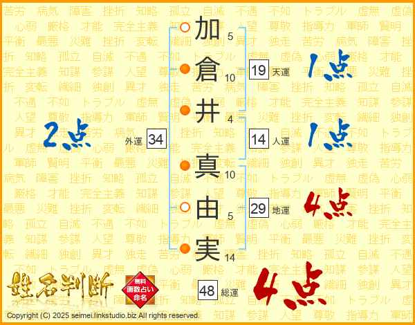 加倉井真由実さんの総運は48画の4点!