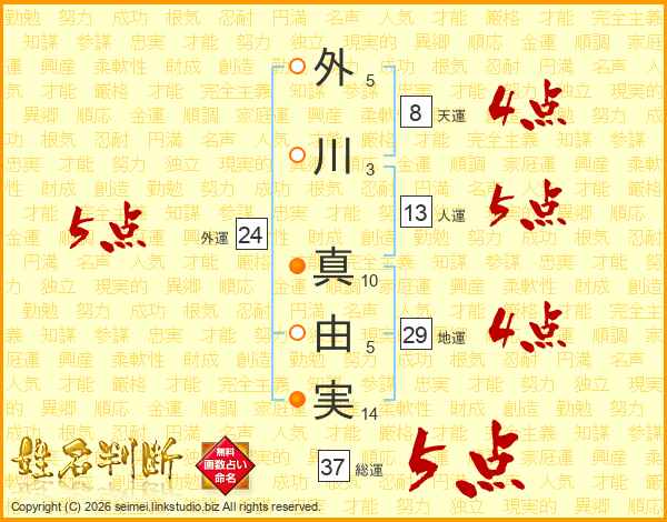 外川真由実さんの総運は37画の5点!