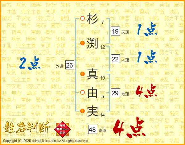 杉(7画)渕(12画) 真(10画)由(5画)実(14画)