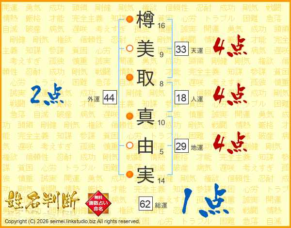 樽美取真由実さんの外運は44画の2点!