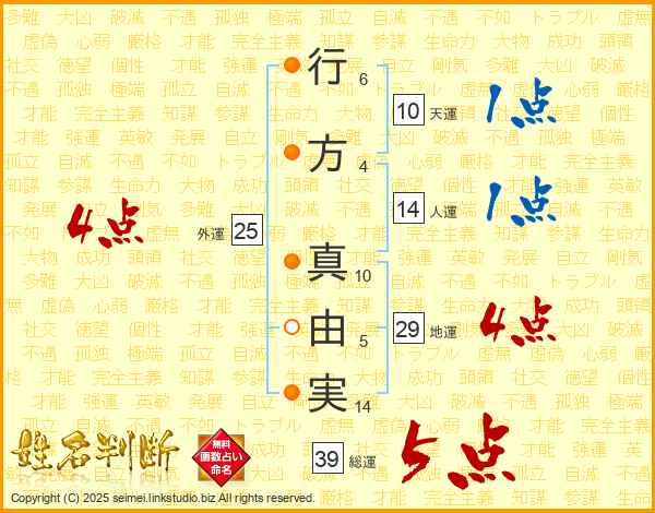 行方真由実さんの総運は39画の5点!