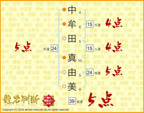 中牟田真由美さんの総運は39画の5点!
