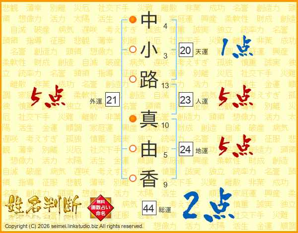 中小路真由香さんの総運は44画の2点!