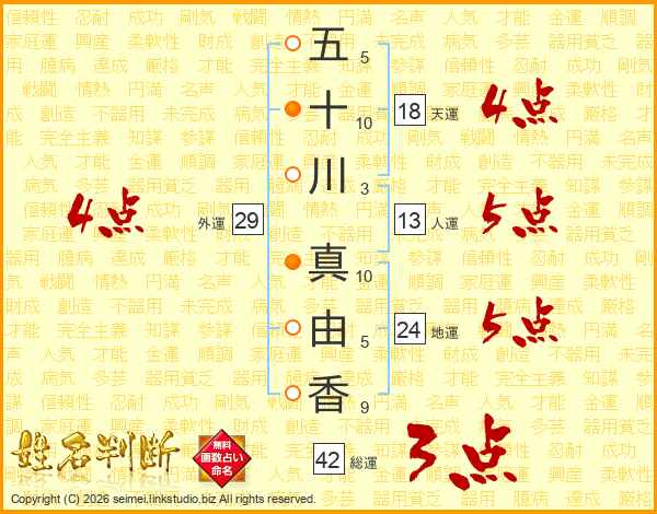 五十川真由香さんの天運は18画の4点!