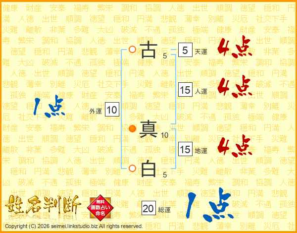 古真白さんの地運は15画の4点!