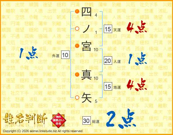 四ノ宮真矢さんの総運は30画の2点!