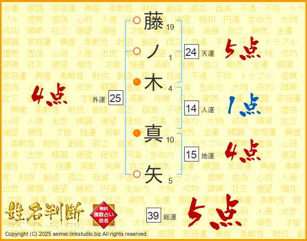 藤ノ木真矢さんの総運は39画の5点!