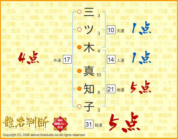 三ツ木真知子さんの総運は31画の5点!