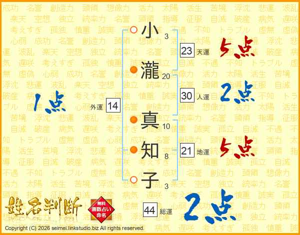 小瀧真知子さんの総運は44画の2点!
