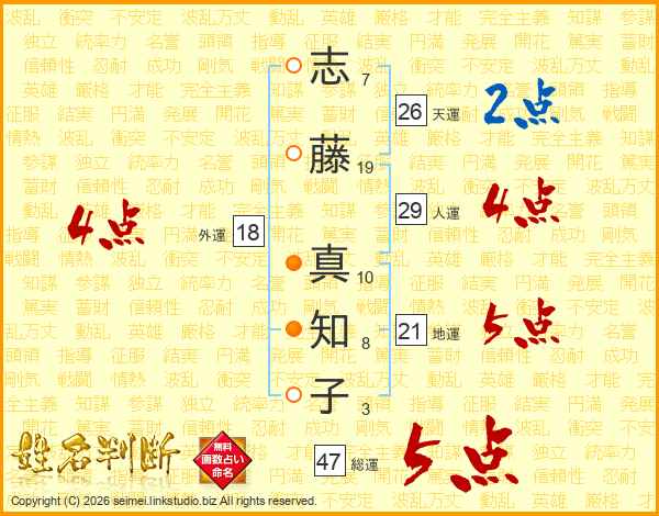 志藤真知子さんの総運は47画の5点!