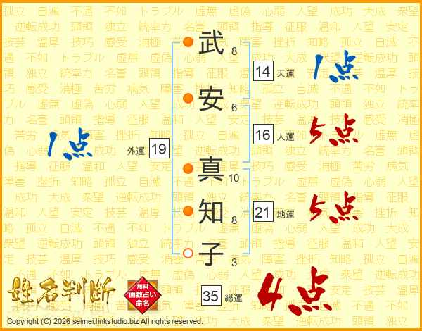 武安真知子さんの総運は35画の4点!