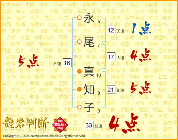永尾真知子さんの総運は33画の4点!