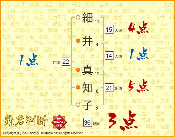 細井真知子さんの総運は36画の3点!