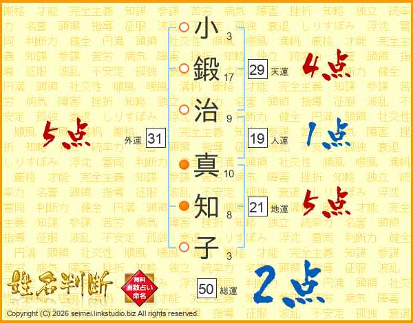 小鍛治真知子さんの外運は31画の5点!