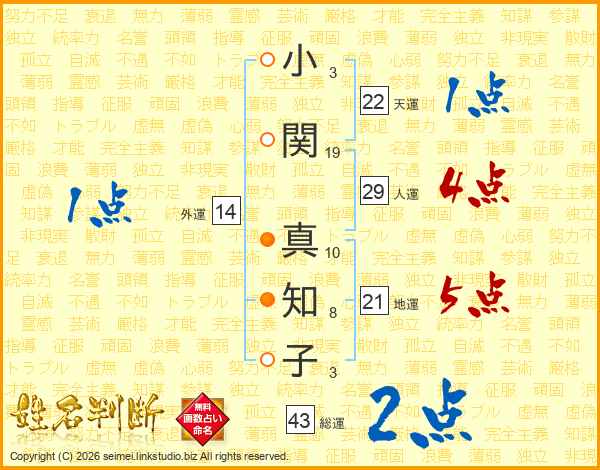 小関真知子さんの総運は43画の2点!