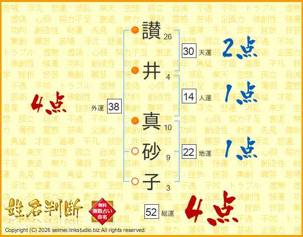讃(26画)井(4画) 真(10画)砂(9画)子(3画)